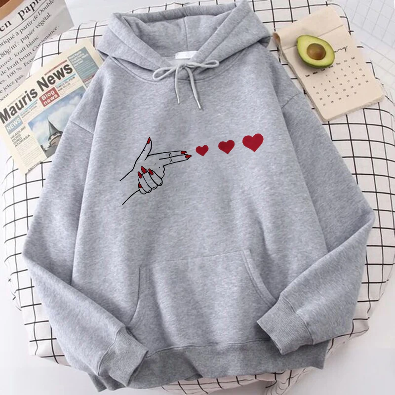 About Funny Heart Pattern Printed Kangaroo Pocket Hoodies 90s Casual