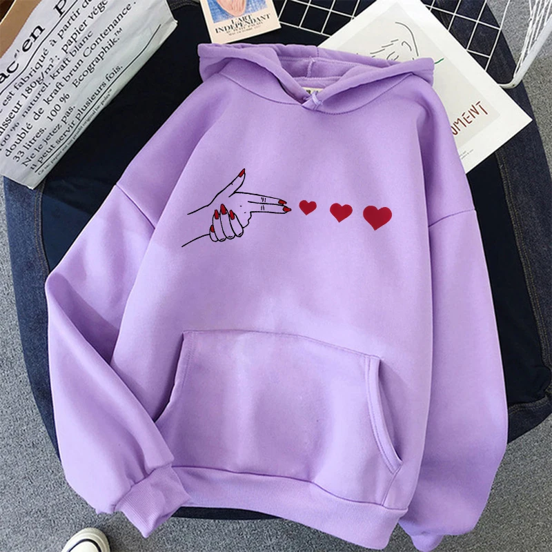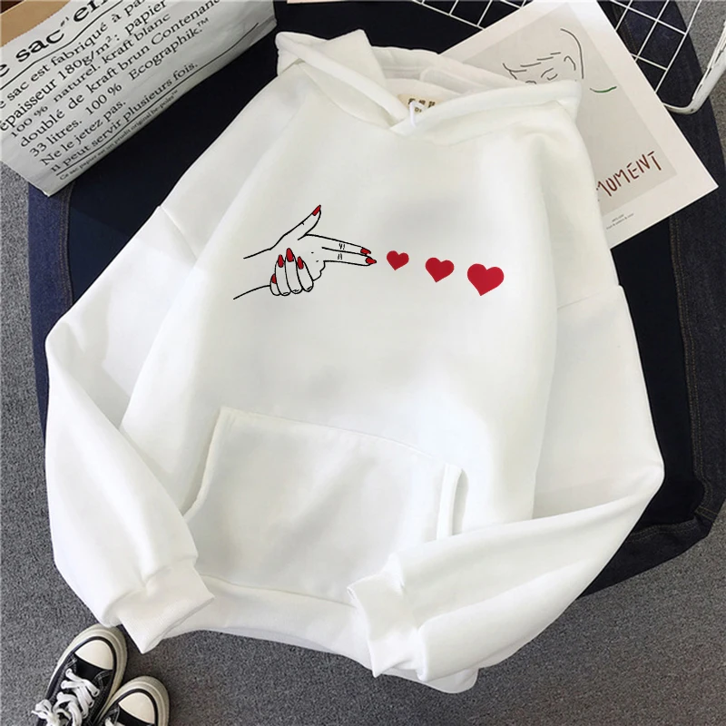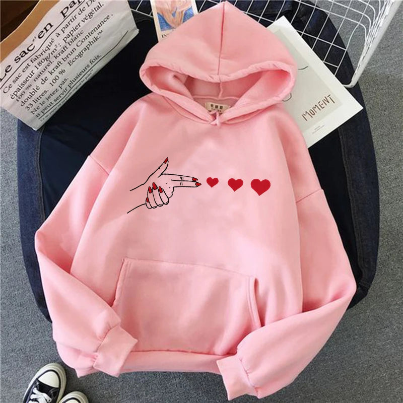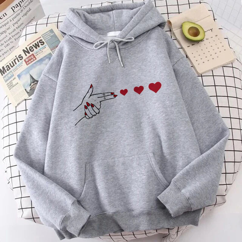 Funny Heart Pattern Printed Kangaroo Pocket Hoodies 90s Casual
