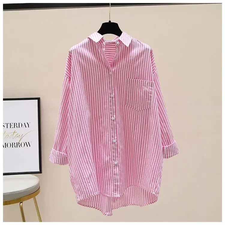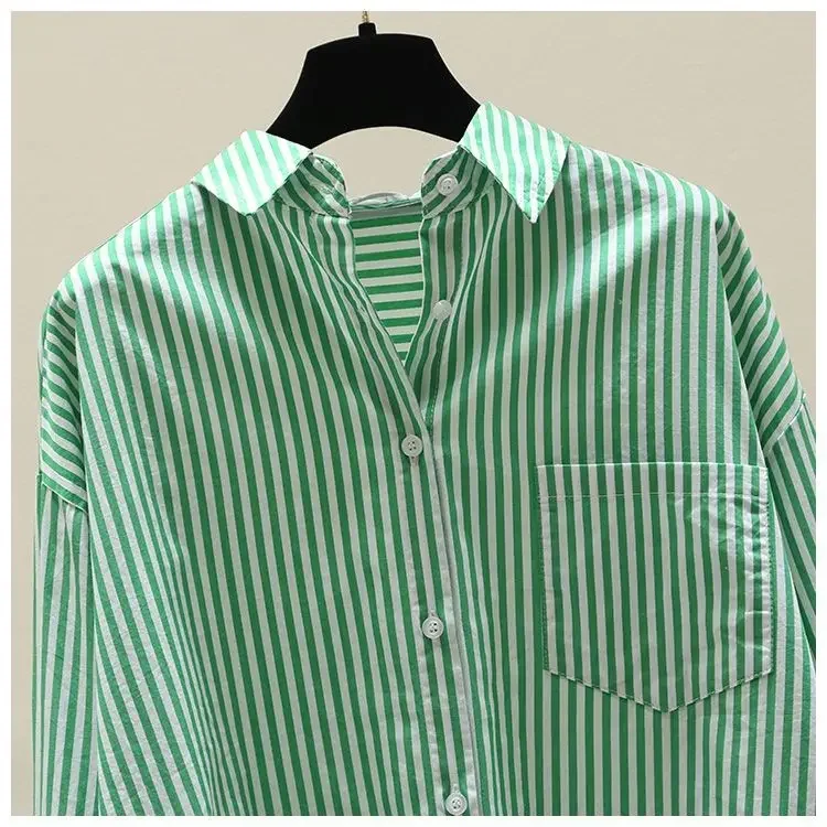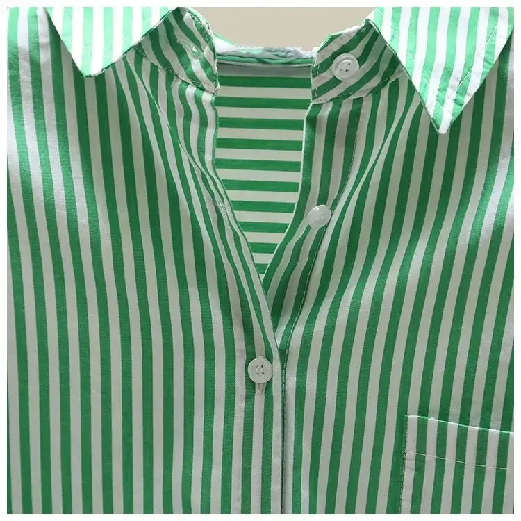 Orange Striped Printed Long-sleeved Shirt for Women, Fashionable