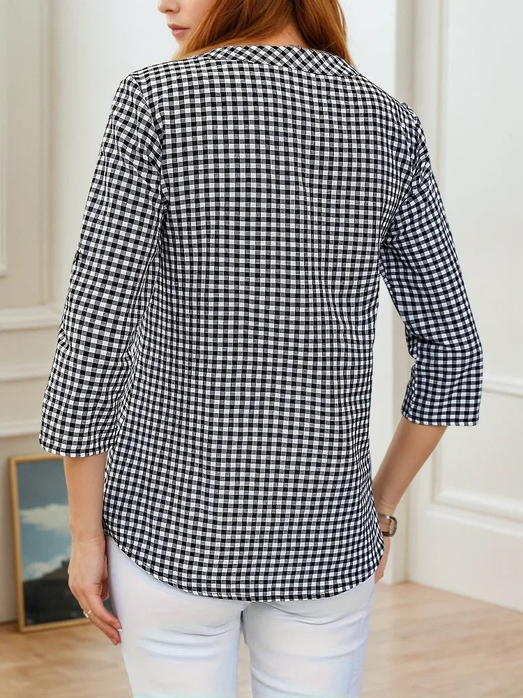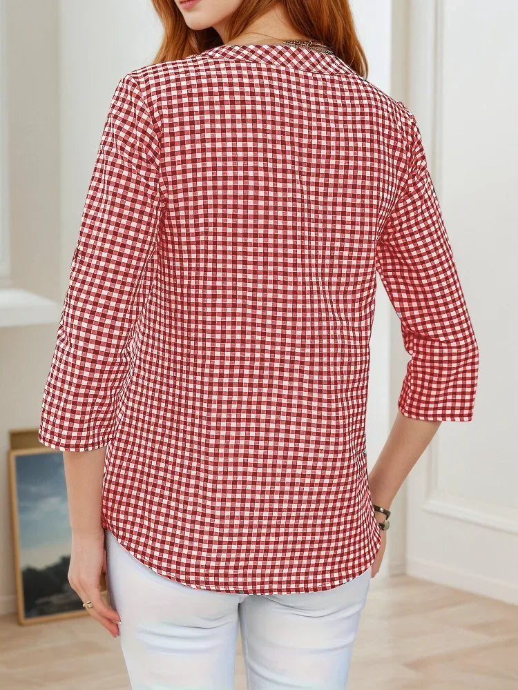 Plus Size Spring Autumn Women Fine Plaid Fashion Long Sleeve