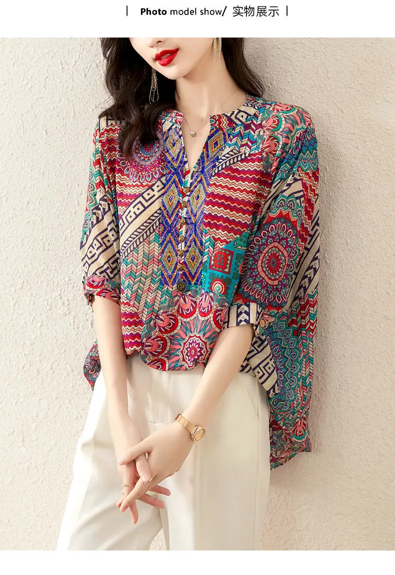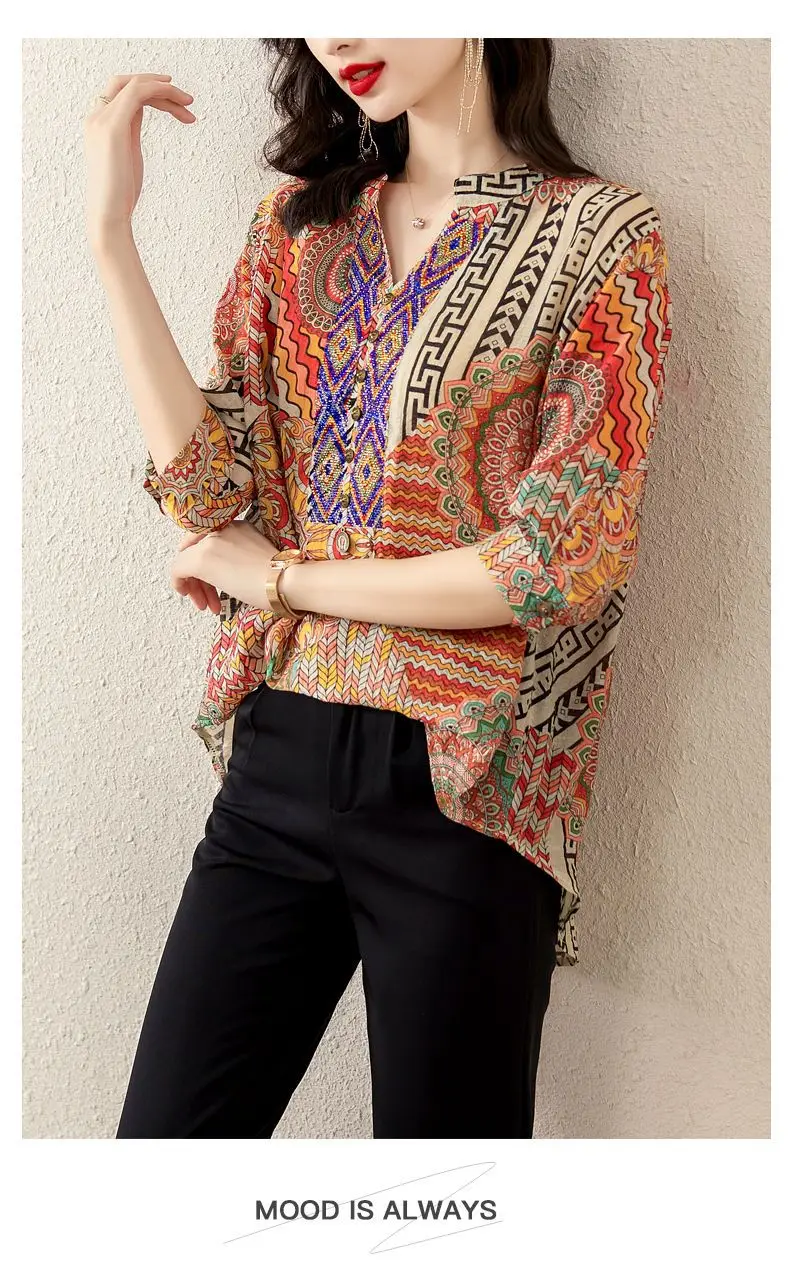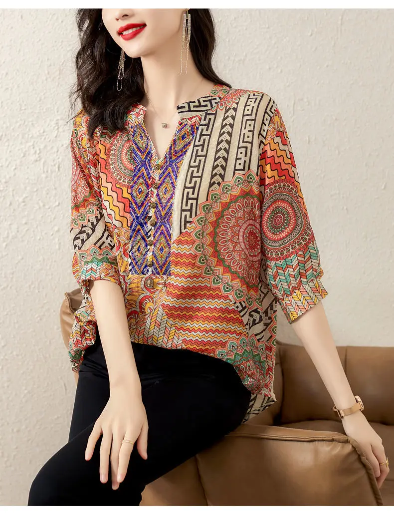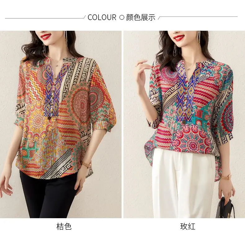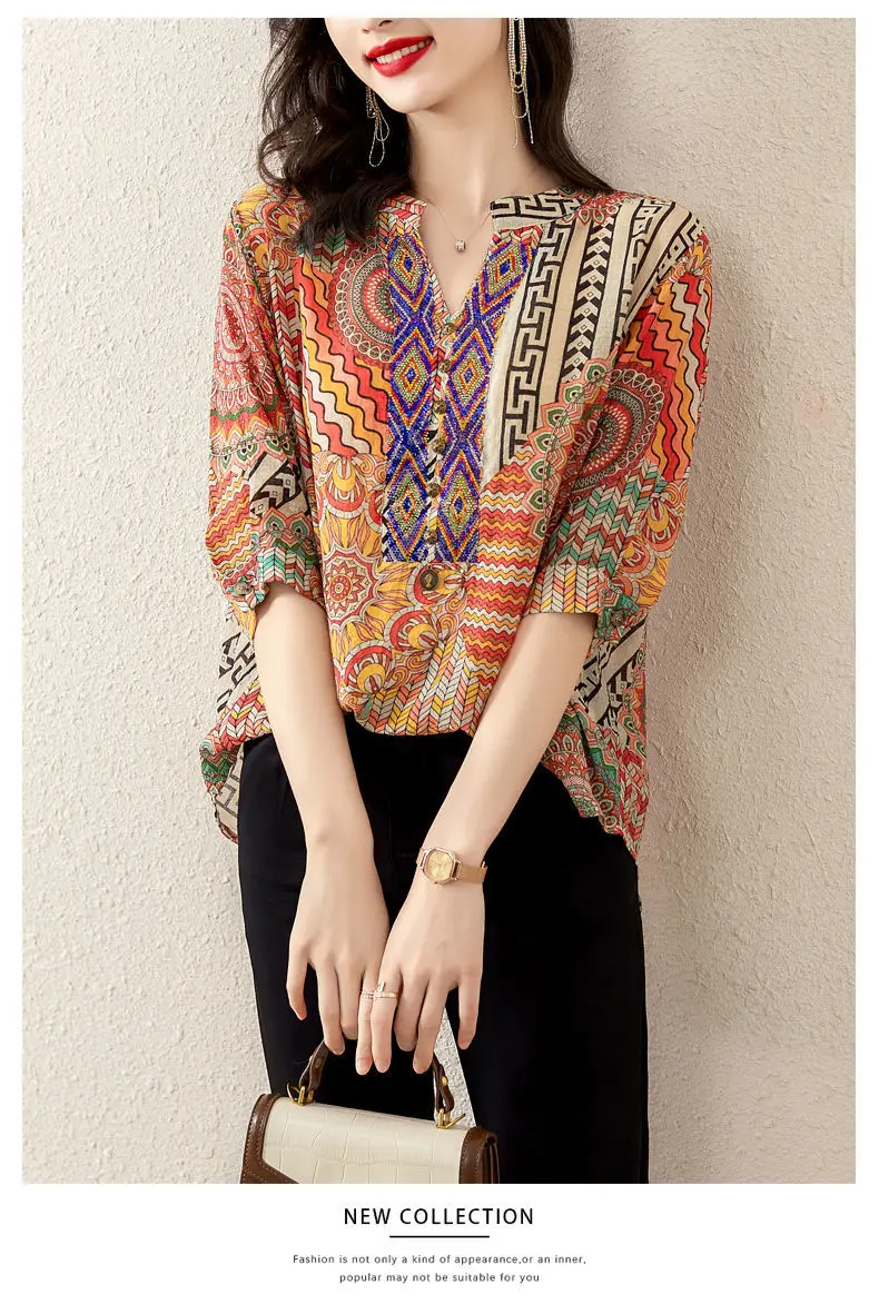 Summer New V-neck Fashion Half Sleeve Blouse Women High