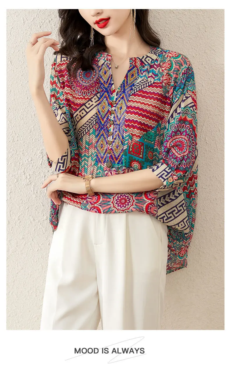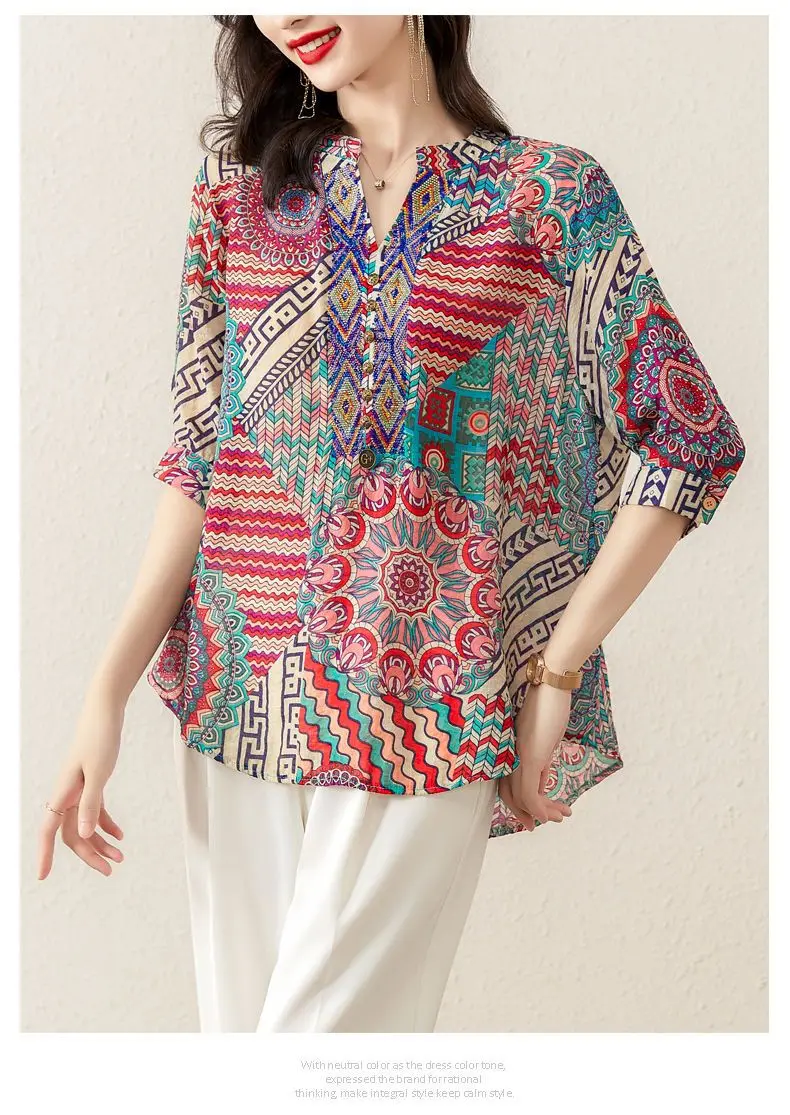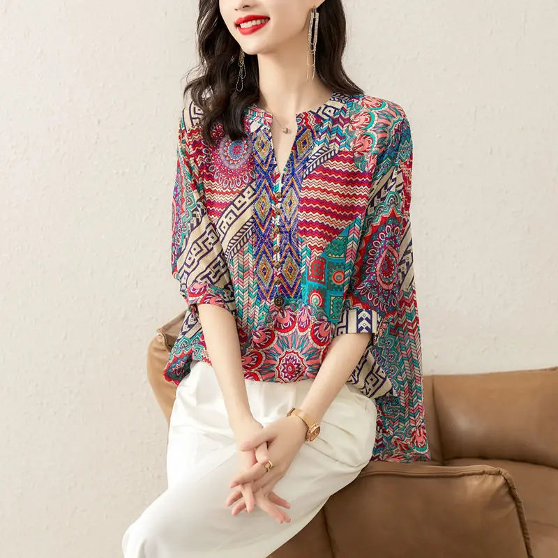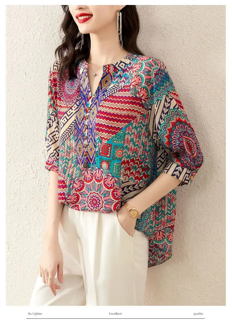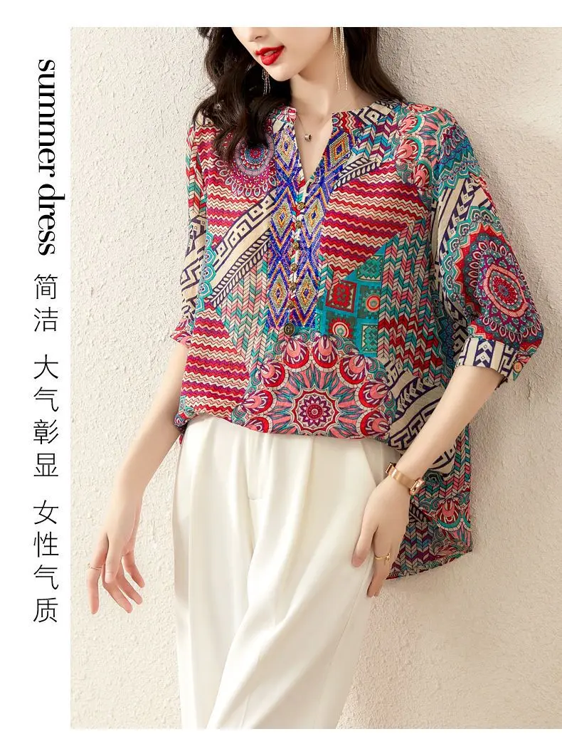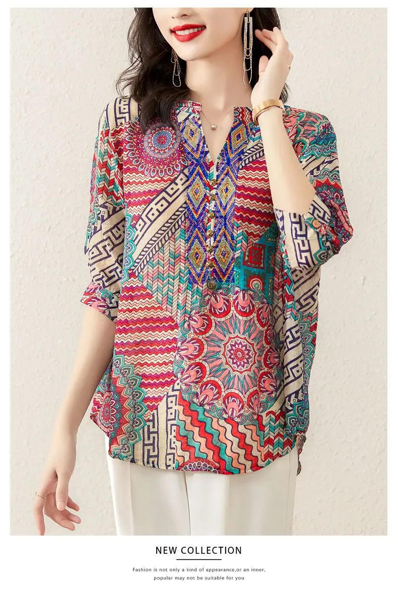 Summer New V-neck Fashion Half Sleeve Blouse Women High